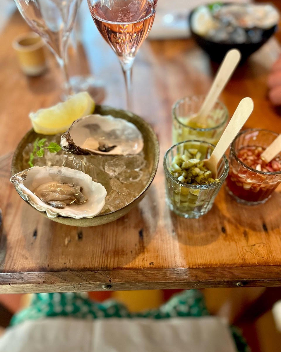 Heldigvis kan jeg på Langeland og Sydfyn næsten altid finde en overflod af de dejligste lokale råvarer i vejboder og gårdbutikker. Og en gang imellem kan man oveni købet komme til østers og champagne-smagning hos Rikke & Nadine i No.10, eller jeg kan forudbestille dem hos Bettina i Rudkøbings Fisk & Røgeri, hvis trangen bliver for stor.
